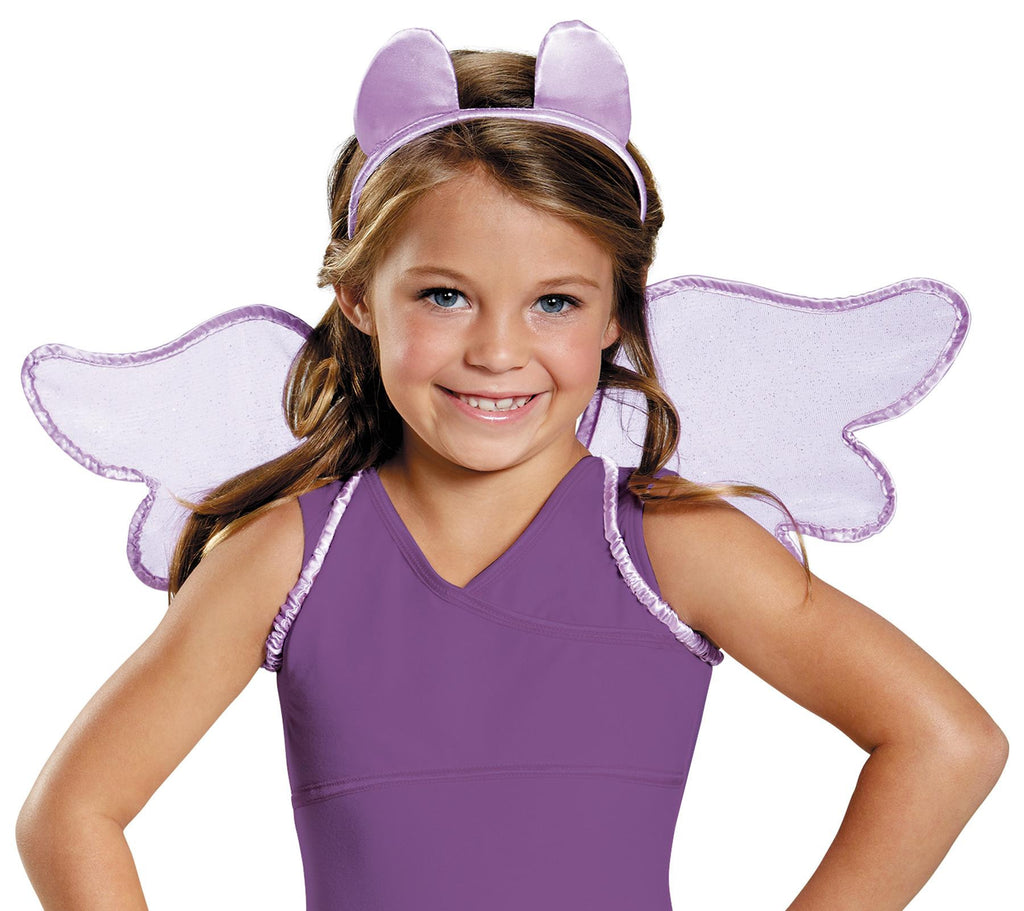 Just what you need for your Twilight Sparkle costume! Kit includes a purple ears headband, sheer purple sparkle wings, and a purple pin-on tail with a pink streak! One size fits most children.