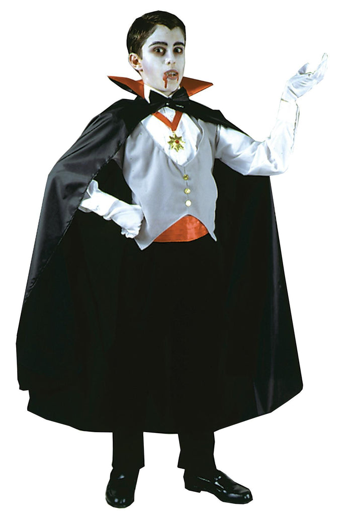 Cape, vest with bow tie, medallion, cummerbund, and gloves. Pants are not included. One size fits up to size 12.
