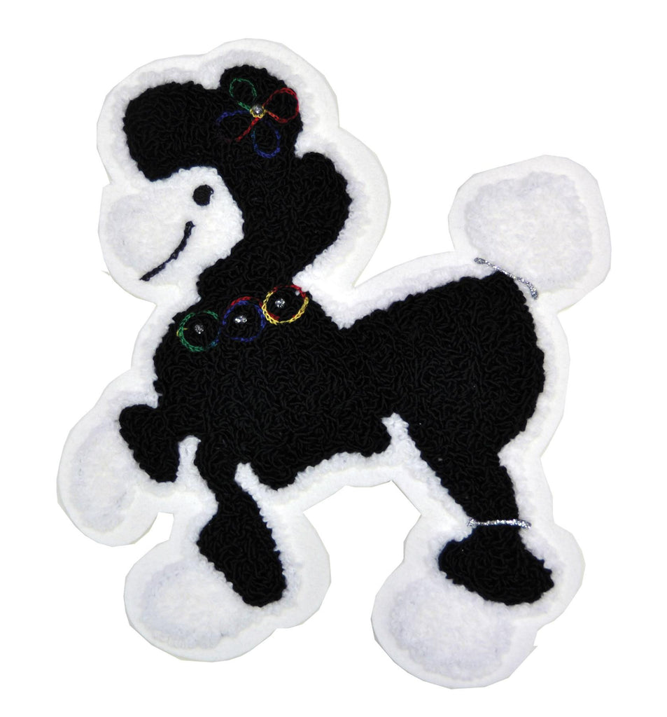 Right out of the 50s. The perfect poodle for every poodle skirt. 8 inch tall sew-on chenille patch.