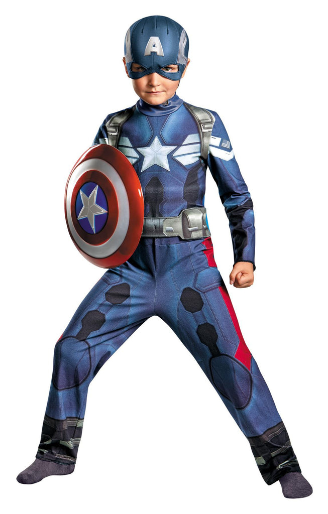 Jumpsuit with attached belt, and character headpiece. (toy shield not included). Fits child sizes 10-12.