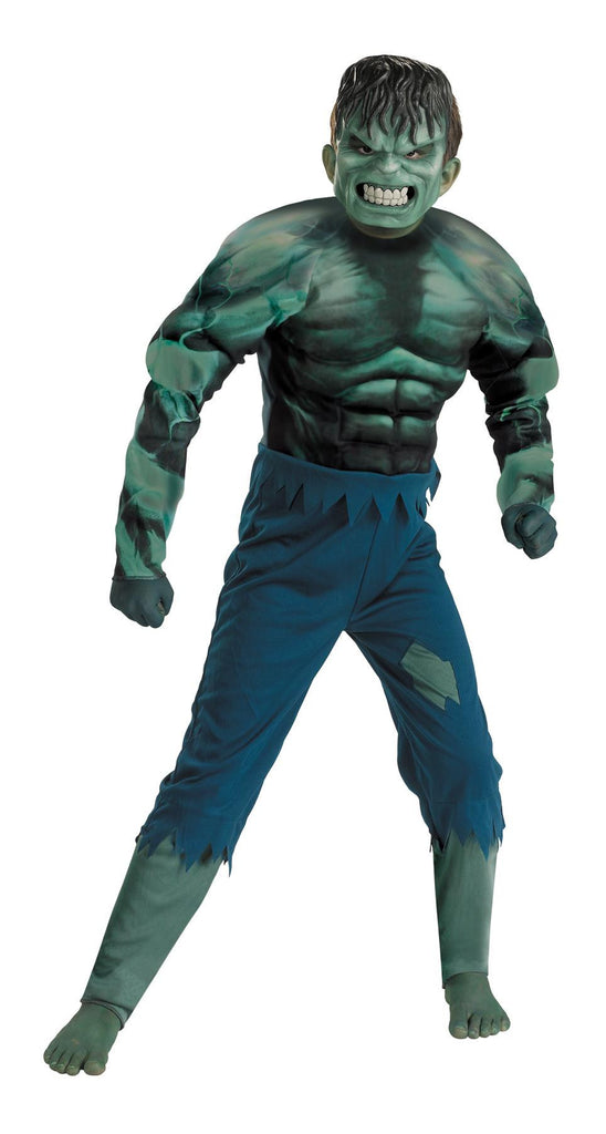 Jumpsuit with muscle torso and arms and character mask. Makeup not included. Fits children's sizes 4-6.