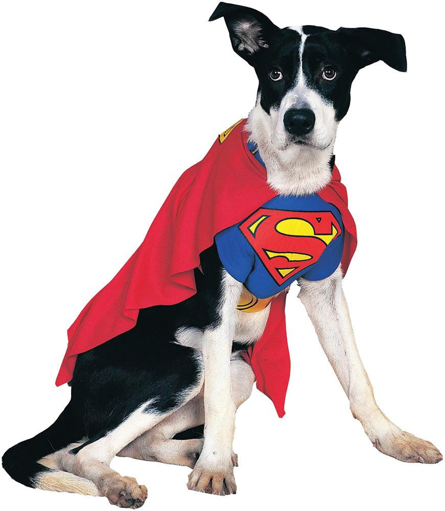 In the comic books, Superman had a dog named Krypto joining him on adventures. With this costume, your dog can now become a crime fighter! Blue chestpiece with Superman 'S' insignia and red cape. Fits extra large dogs that measure 28" from neck to tail.