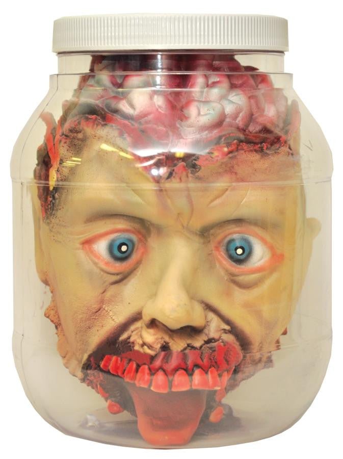 Jaw-dropping. Leave sitting out on counter or in your evil laboratory for the best effect. Supply your own water. Prop is 7 inches tall, 6 inches wide.